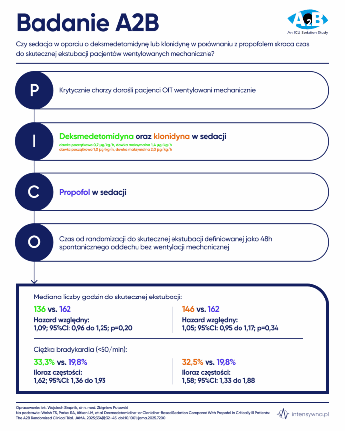 Czy sedacja w oparciu o deksmedetomidynę lub klonidynę w porównaniu z propofolem skraca czas do skutecznej ekstubacji pacjentów wentylowanych mechanicznie?
