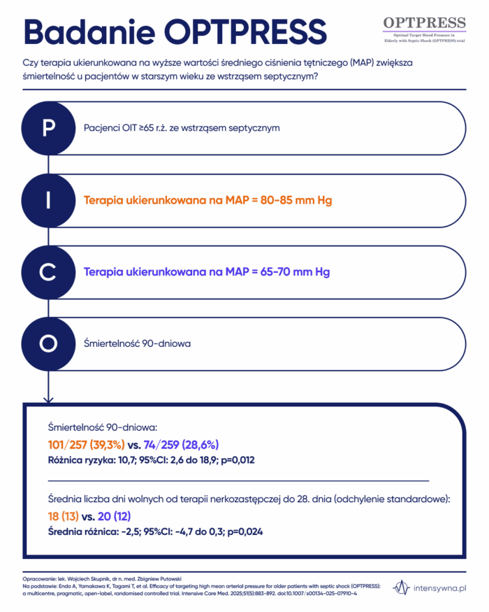 Czy terapia ukierunkowana na wyższe wartości średniego ciśnienia tętniczego (MAP) zwiększa śmiertelność u pacjentów w starszym wieku ze wstrząsem septycznym?