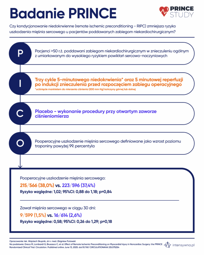 Czy kondycjonowanie niedokrwienne (remote ischemic preconditioning - RIPC) zmniejsza ryzyko uszkodzenia mięśnia sercowego u pacjentów poddawanych zabiegom niekardiochirurgicznym?